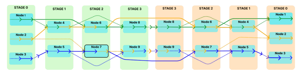SkipPipe एक नया शेड्यूलिंग एल्गोरिथम का उपयोग करता है जो नेटवर्क के माध्यम से उपलब्ध गणना मार्गों का विश्लेषण करता है और सबसे इष्टतम मार्ग का चयन करता है। इससे GPU का डेड टाइम घटता है और विफलता सहनशीलता बढ़ती है, सिस्टम को कामकाजी या धीमे नोड्स से बचने की अनुमति मिलती है।